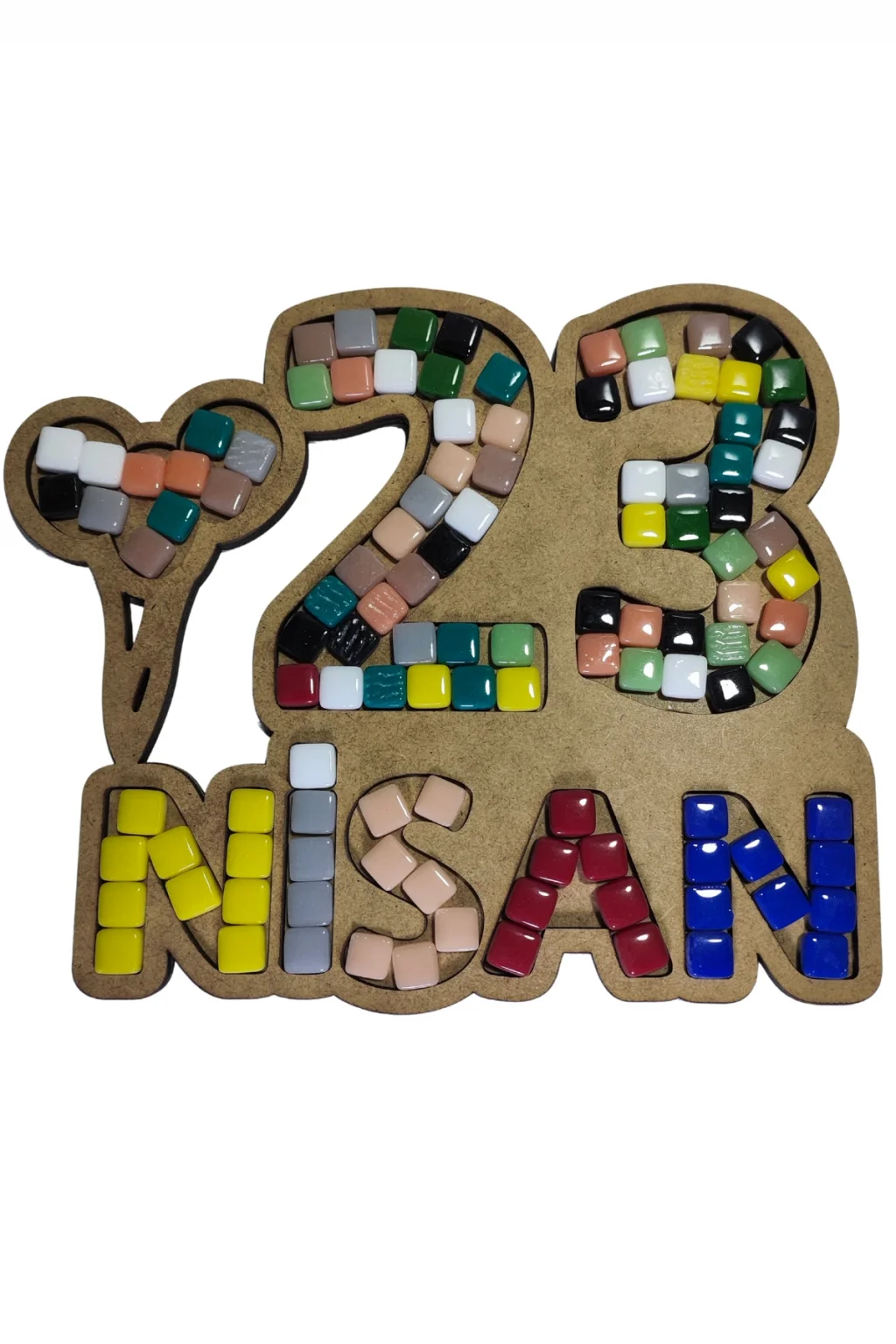 Dayanıklı MDF malzemeden üretilmiş “23 Nisan” yazılı tasarım, mozaik taşların kolayca yerleştirilebileceği alanlara sahiptir. Çocuklar renkli mozaik taşlarla rakamları ve yazıyı diledikleri gibi süsleyerek kendi özgün çalışmalarını oluşturabilir.