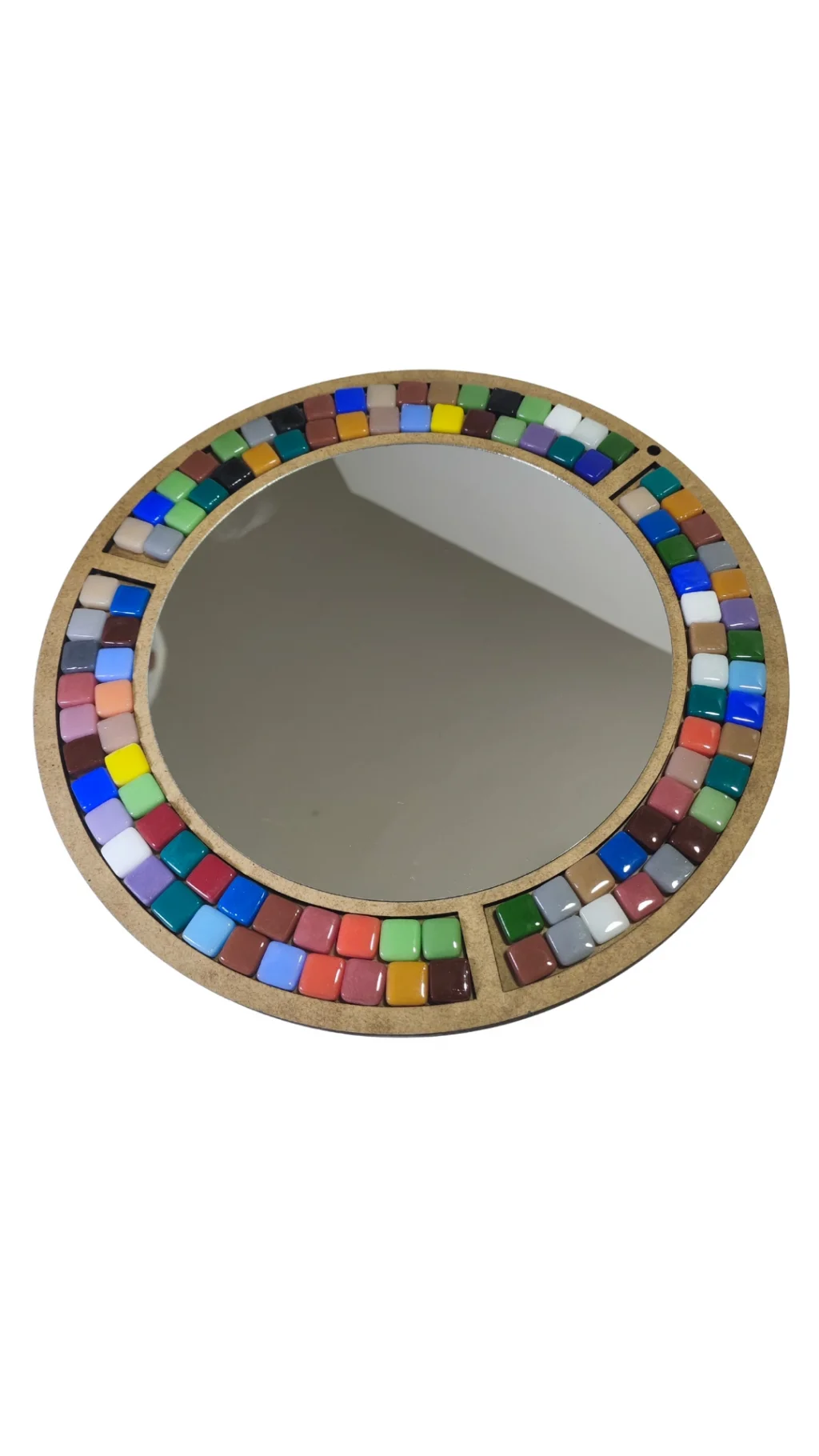 Dayanıklı MDF baz üzerine yerleştirilen ayna, çevresindeki mozaik alan ile birlikte tasarlanmıştır. Kullanıcılar renkli mozaik taşlar ile aynanın etrafını diledikleri gibi süsleyerek tamamen özgün bir tasarım oluşturabilir.
