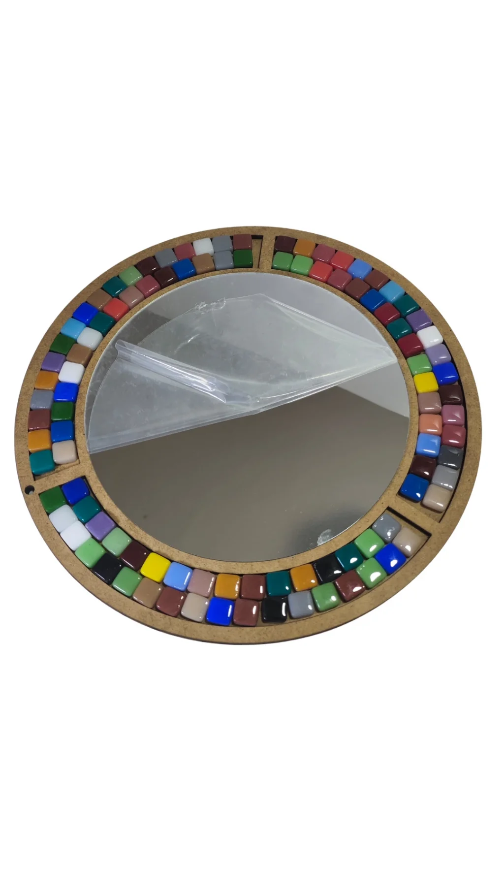Aynalı Mozaik Daire Seti 23x23 cm, hem çocuklar hem de yetişkinler için tasarlanmış eğlenceli ve aynı zamanda ortaya dekoratif bir ürün çıkaran özel bir etkinlik setidir.