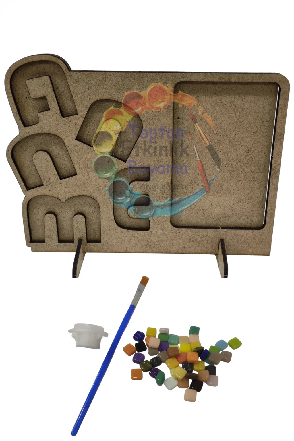“Annem Çerçeve” temalı mozaik yapma seti, Anneler Günü’nde çocukların kendi elleriyle hazırlayacağı anlamlı bir hediye sunar. MDF taban üzerine yerleştirilen renkli mozaik taşları ile hem dekoratif bir çerçeve elde edilir hem de çocukların dikkat, motor beceri ve yaratıcılık gelişimi desteklenir. Sınıf içi etkinliklerde, aile atölyelerinde ve AVM organizasyonlarında keyifle kullanılabilecek özel bir üründür.