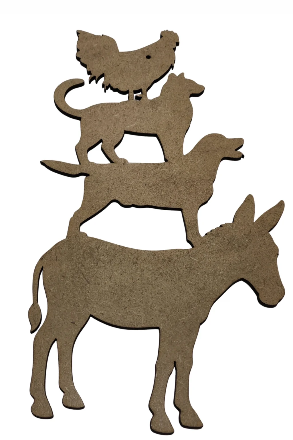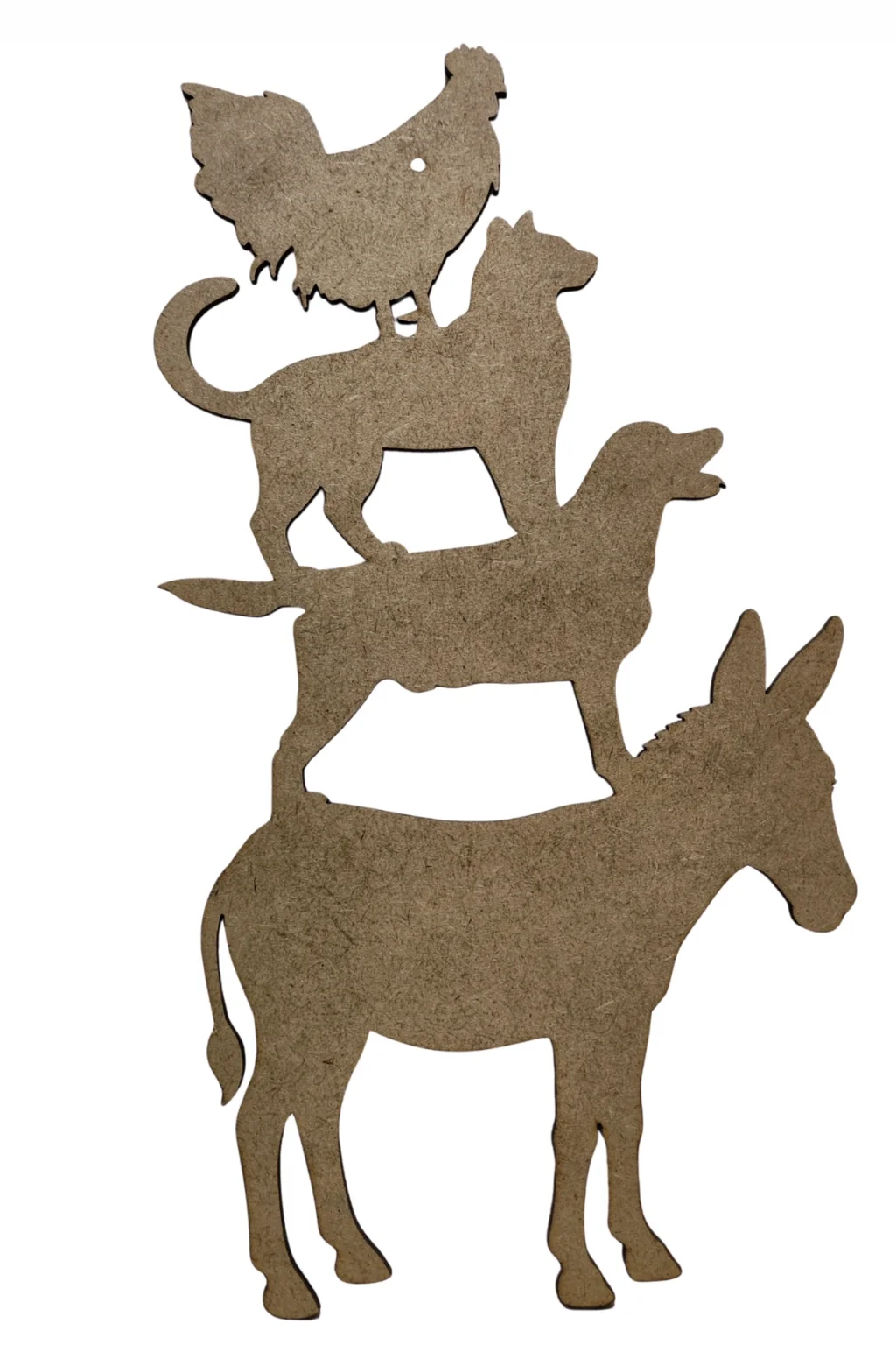 Ürün MDF malzemeden üretilmiştir ve üst üste dizilmiş hayvan figürlerinden oluşan tek parça masal kompozisyonu şeklindedir. Demonte yapısı sayesinde kolayca monte edilir ve ayakta durabilen formu ile boyama sonrası dekoratif olarak sergilenebilir.