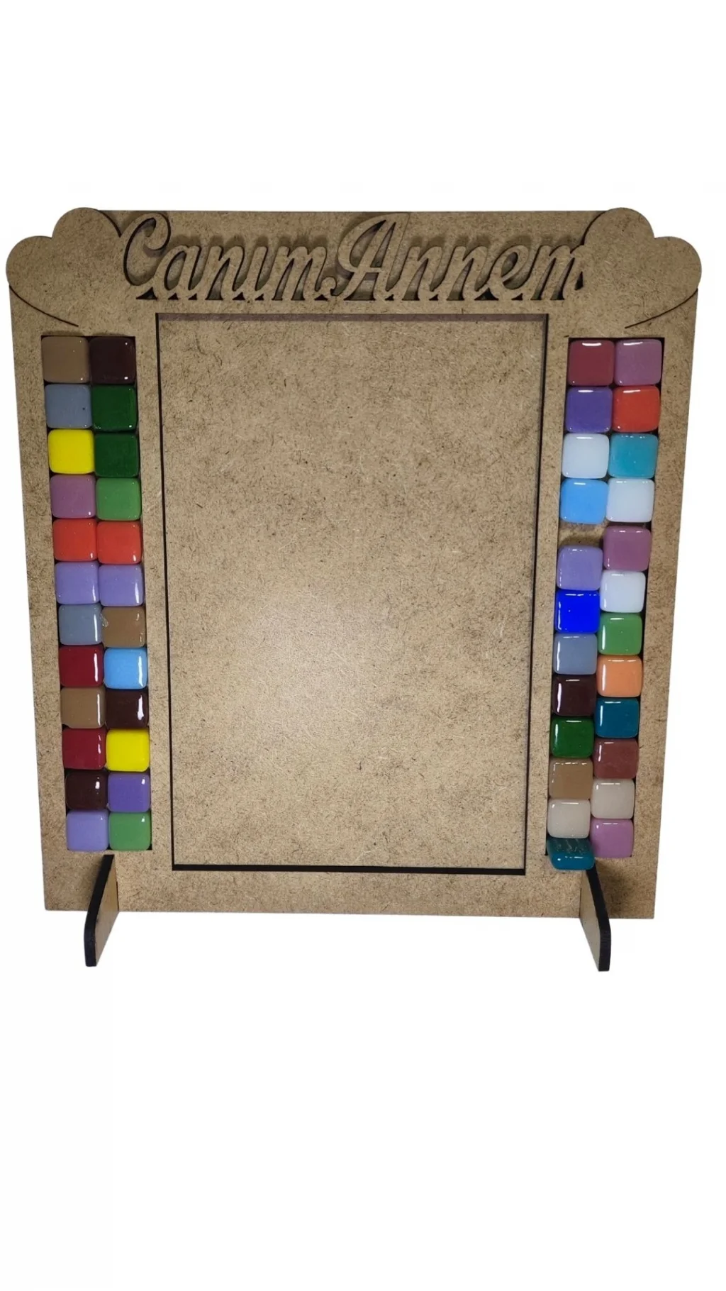 Dayanıklı MDF malzemeden üretilmiş çerçeve üzerine mozaik taşlar uygulanarak tamamen kişiye özel tasarımlar oluşturulabilir. Üzerinde yer alan “Canım Annem” yazısı ile özellikle Anneler Günü etkinlikleri için tasarlanmıştır.