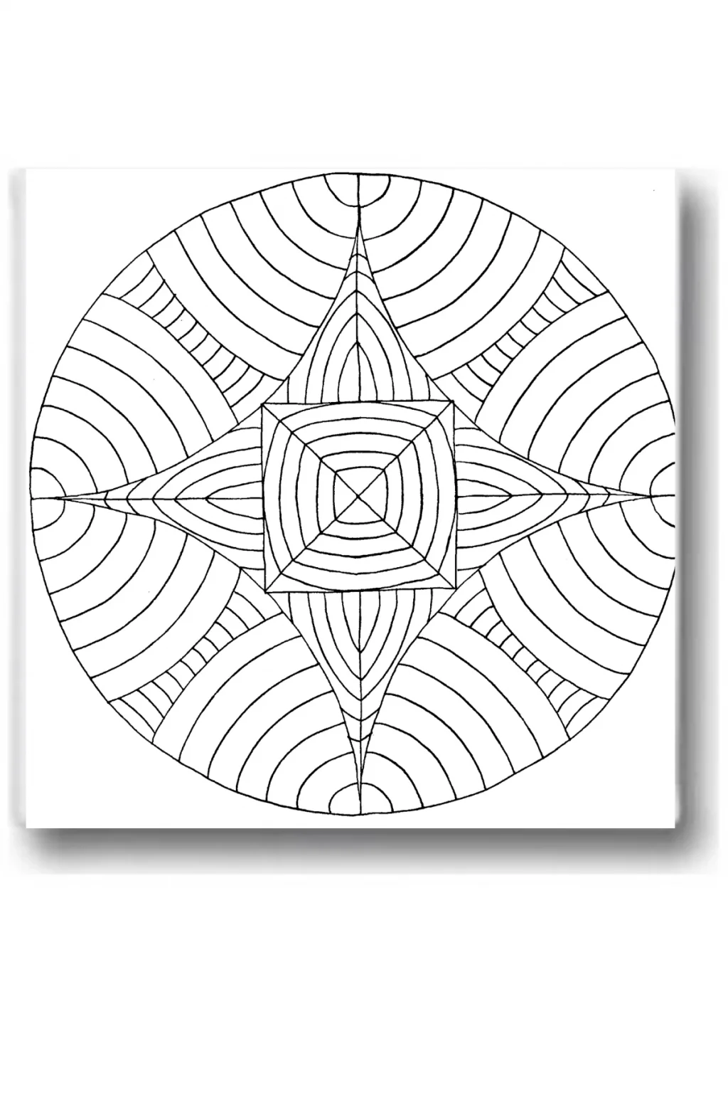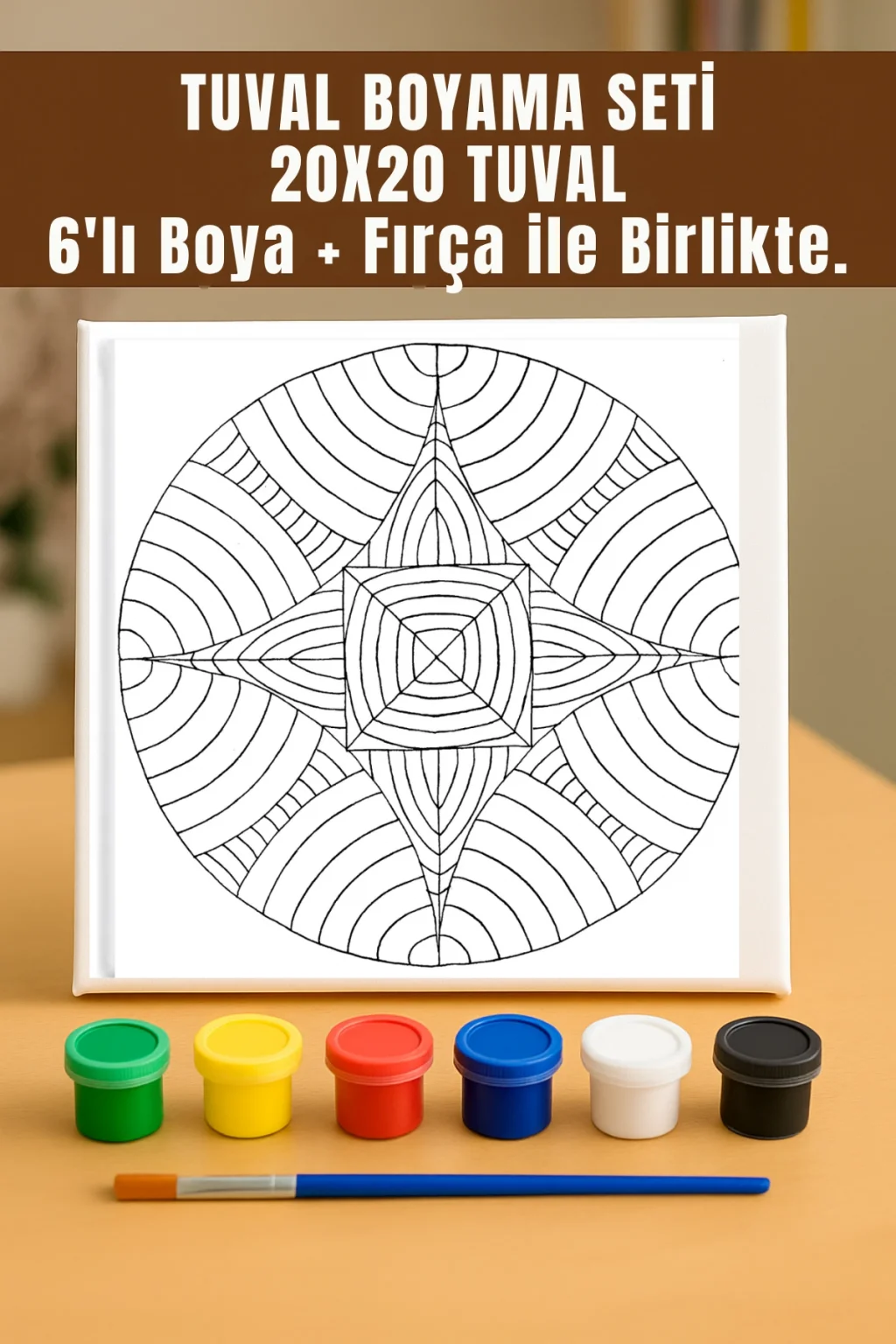 1 adet 20x20 cm tuval (Daire Mandala temalı çizim)