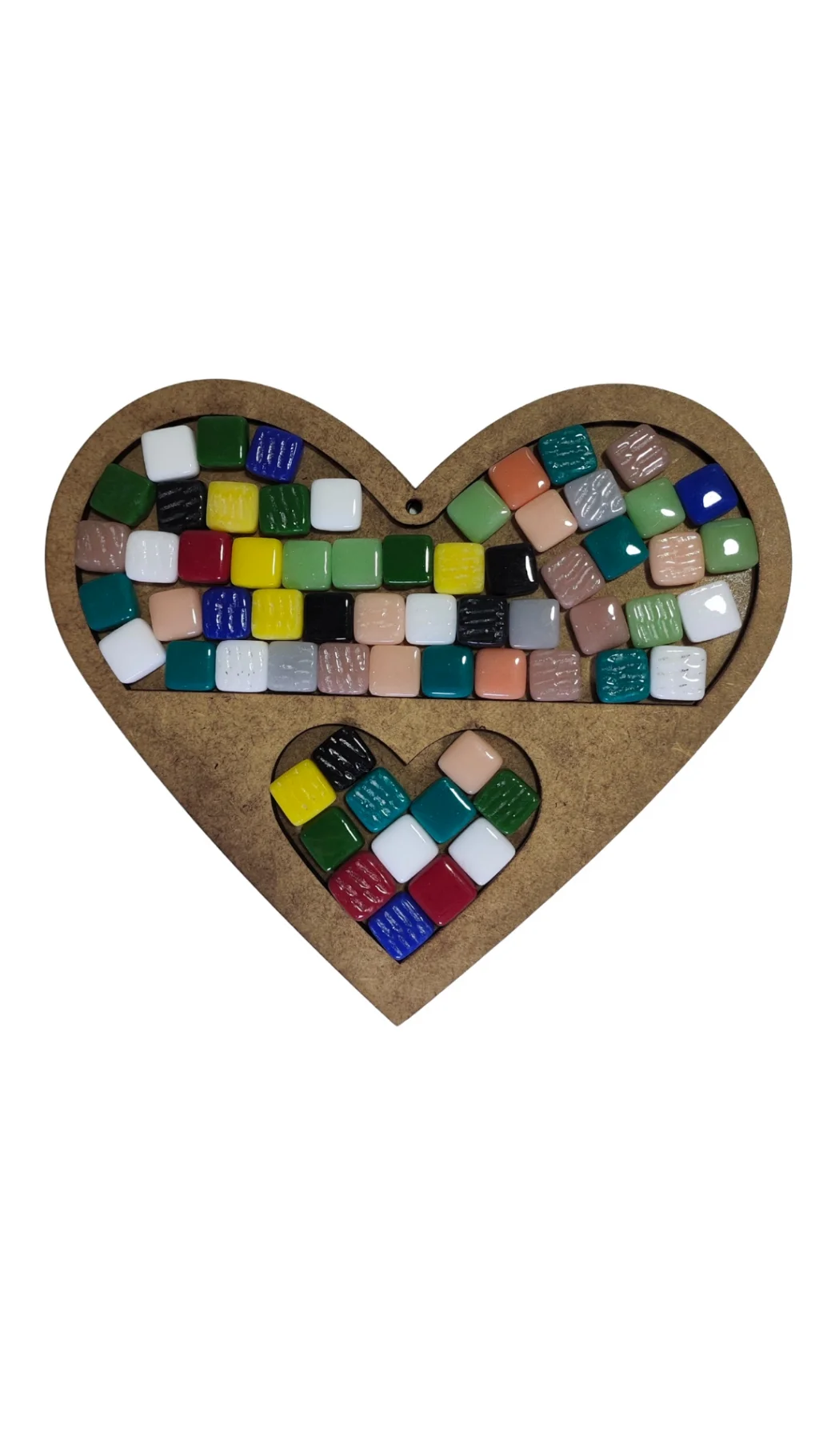 Kalp formunda tasarlanmış MDF baz üzerine mozaik taşlar yerleştirilerek oluşturulan bu etkinlik, çocukların dikkat, sabır ve görsel algı becerilerini destekler.