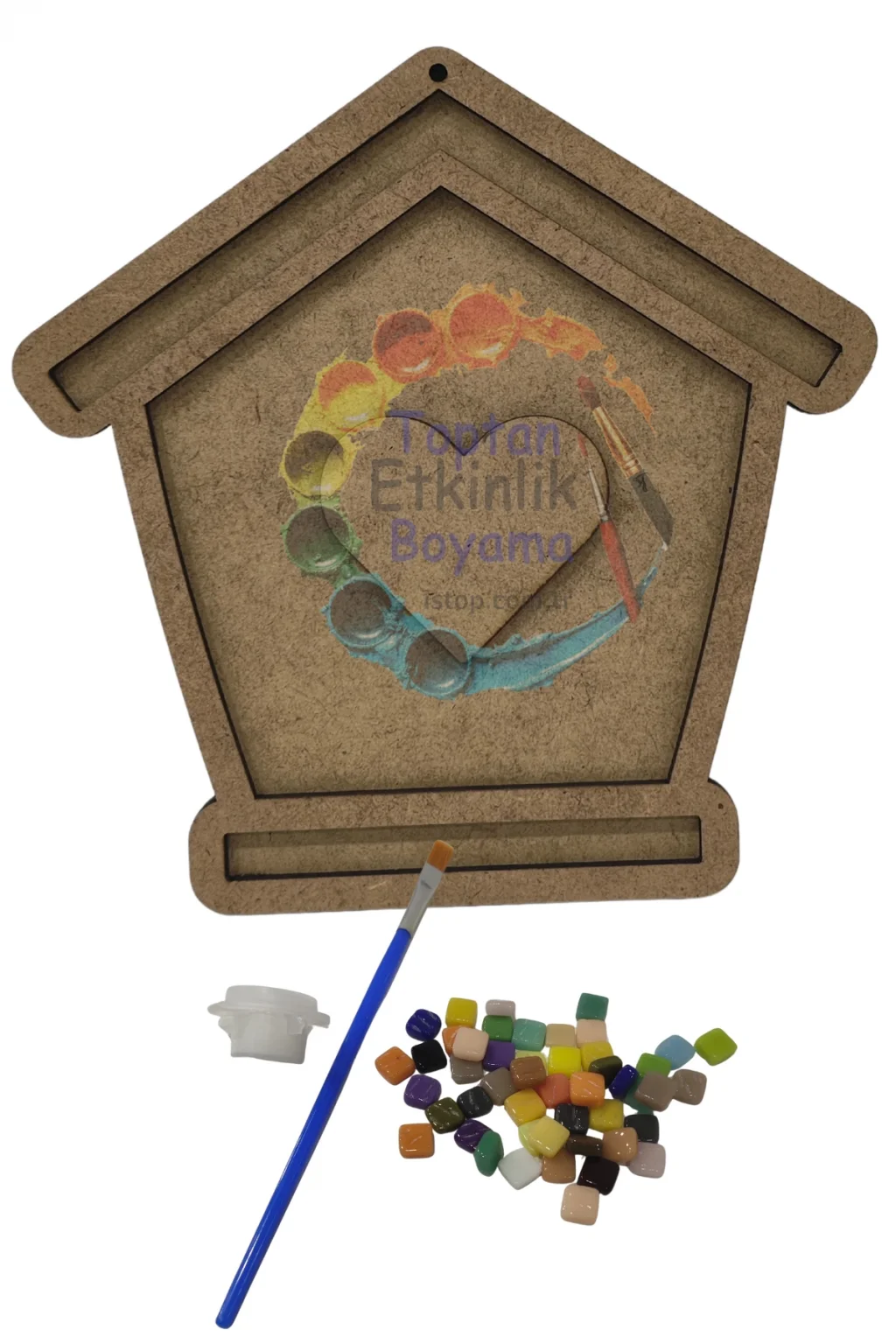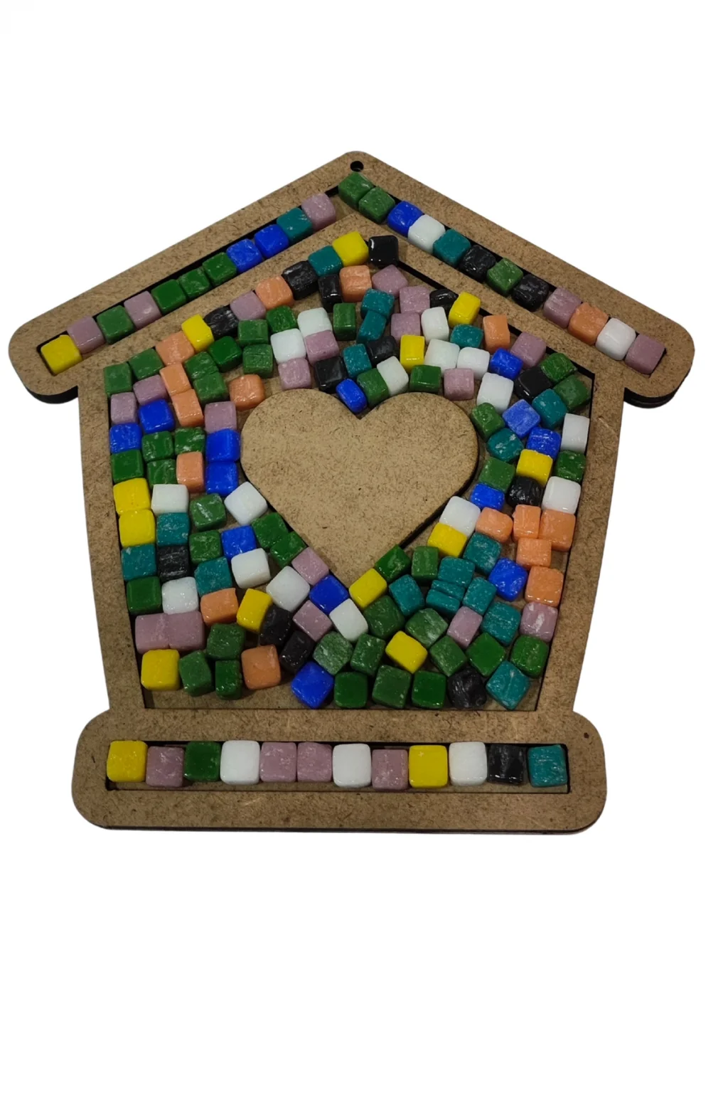 Ev Mozaik Yapma Seti, sıcak ve sevimli tasarımıyla çocuklara hem eğlenceli hem de öğretici bir etkinlik imkânı sunar. MDF taban üzerine renkli mozaik taşların yerleştirilmesiyle ev figürü tamamlanır. Çocukların dikkat gelişimini, ince motor becerilerini ve hayal gücünü destekler. Okul içi çalışmalar, sanat atölyeleri veya ailece yapılacak keyifli aktiviteler için mükemmel bir üründür.