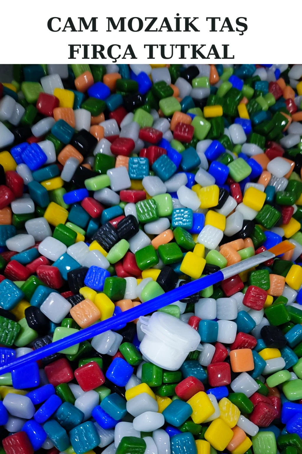 • 1 Adet MDF Baz + 10x10 mm Plastik Mozaik Taş + Tutkal ve Fırça Dahildir