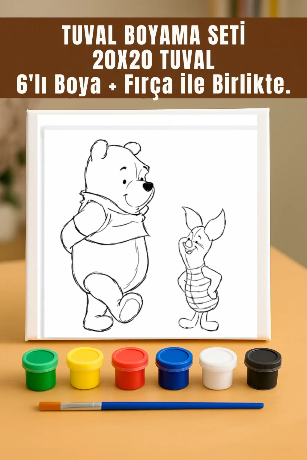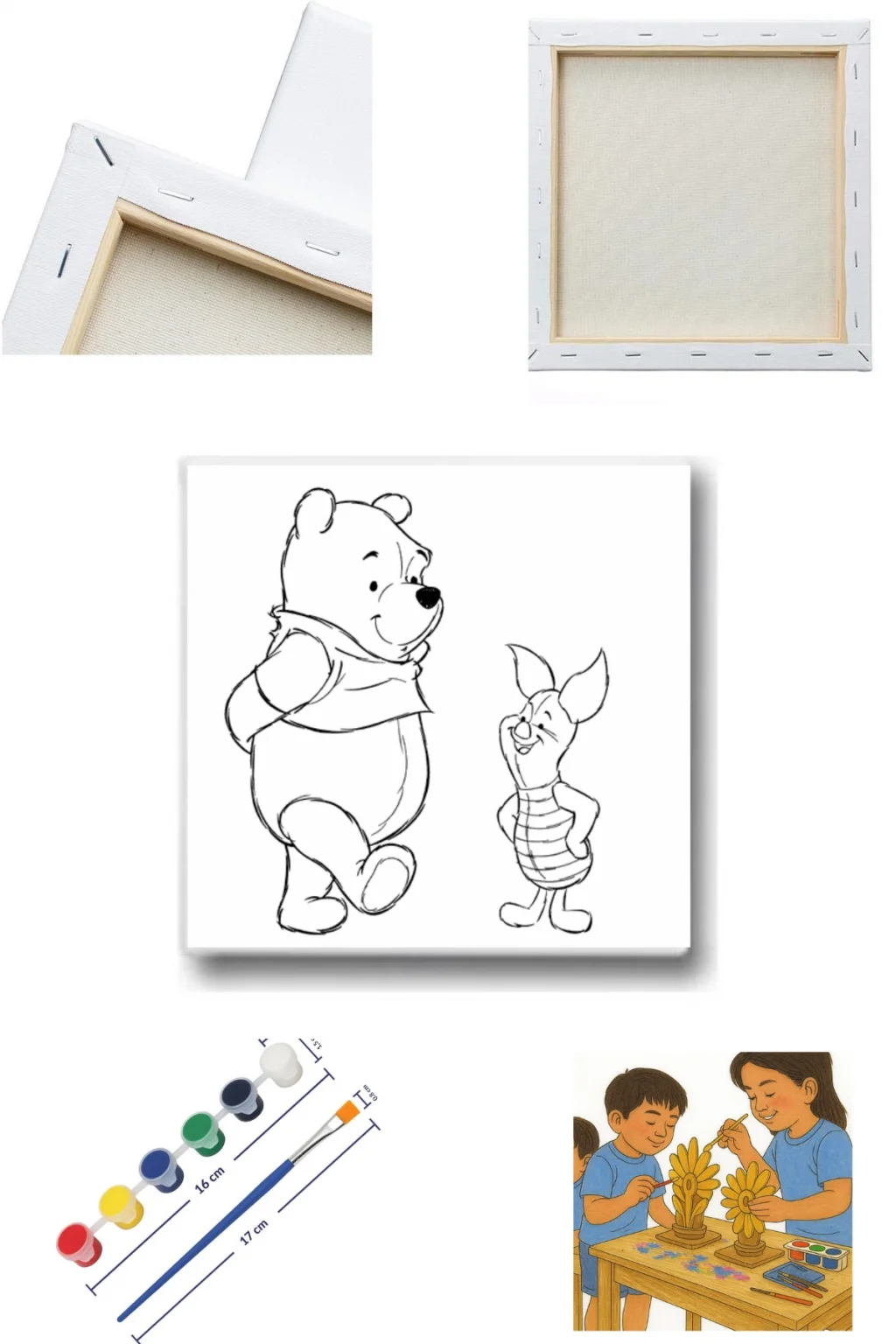 1 adet 20x20 cm tuval (Piglet ve Wendy Pooh temalı çizim)