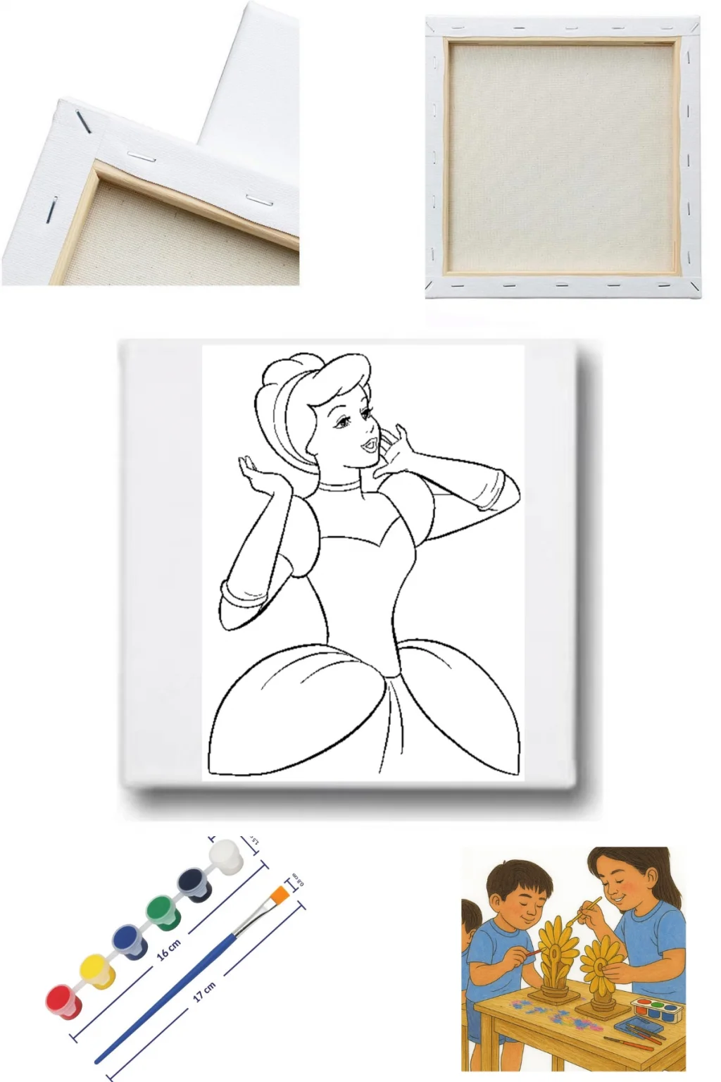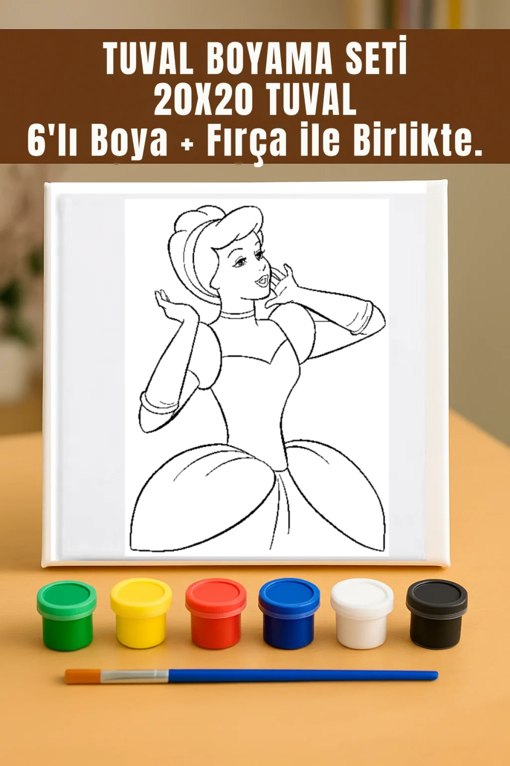 1 adet 20x20 cm tuval (Prenses temalı çizim)
