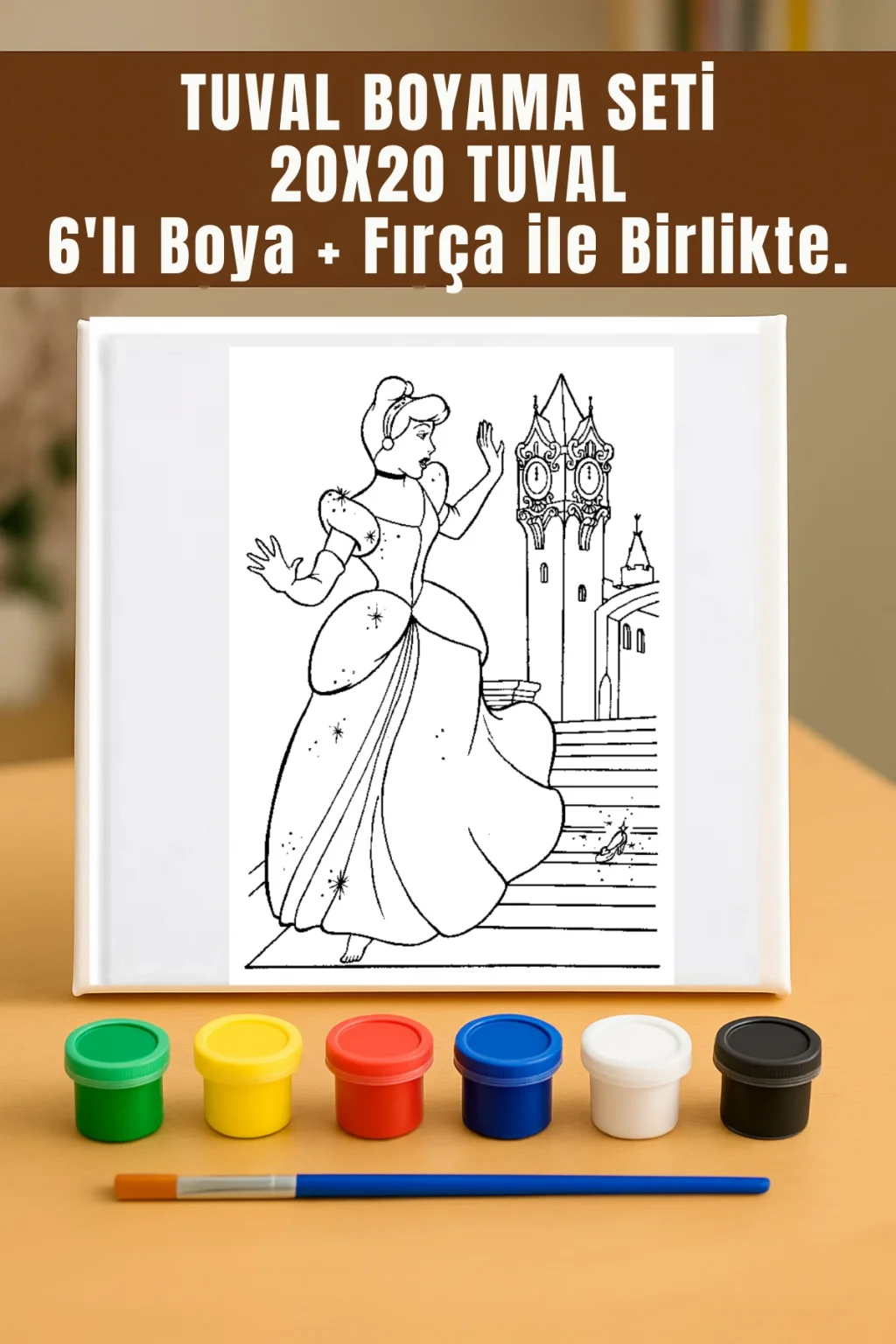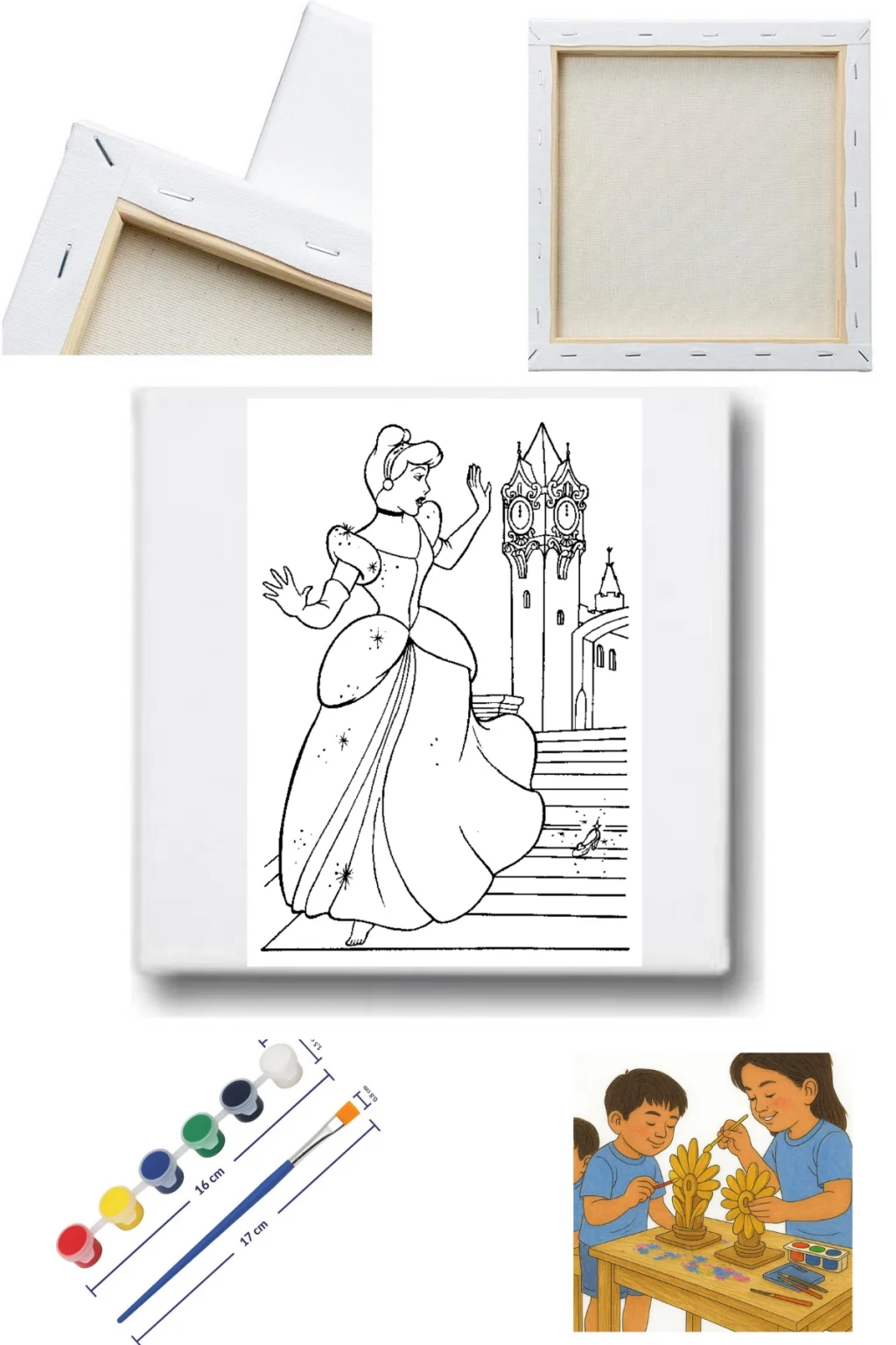 Sinderella Tuval Seti | Atölye Etkinlik 20x20 Tuval (6’lı Boya + Fırça Dahil)