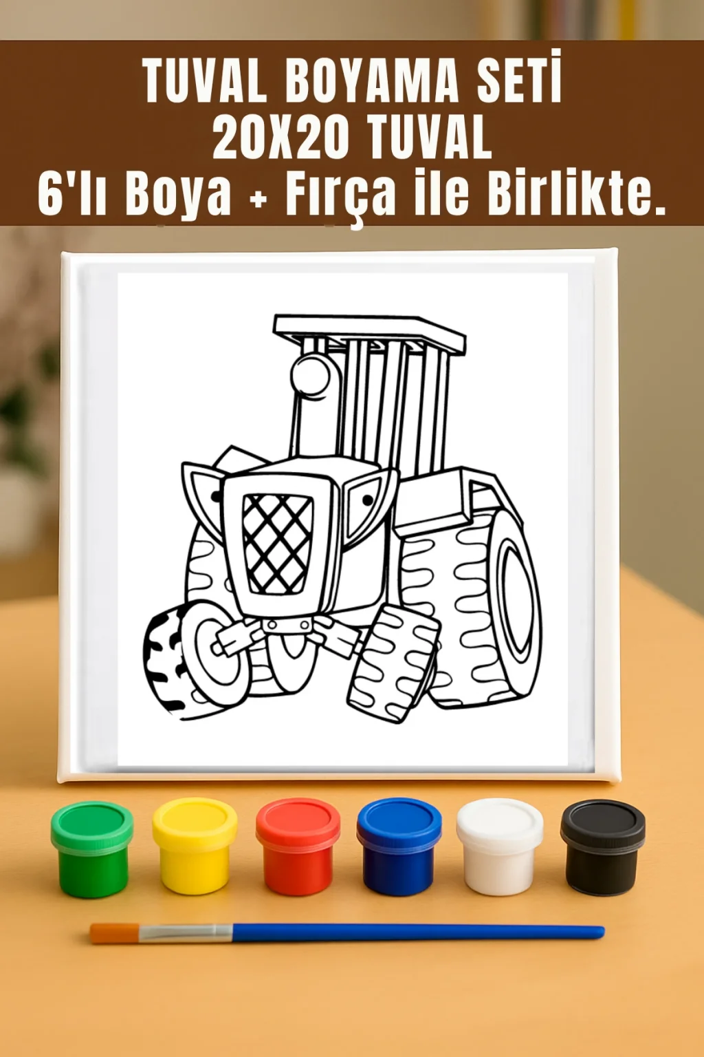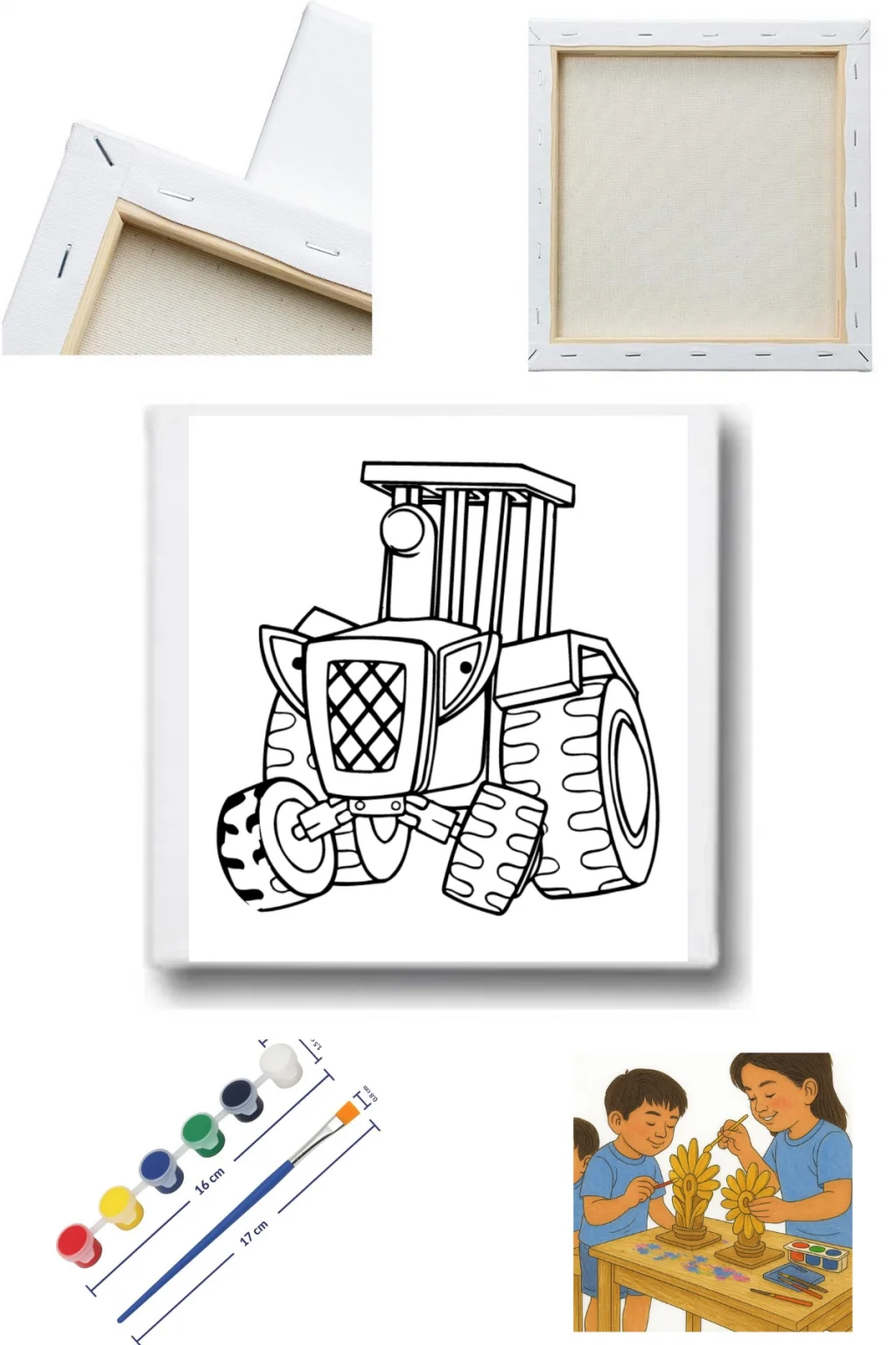1 adet 20x20 cm tuval (Traktör temalı çizim)