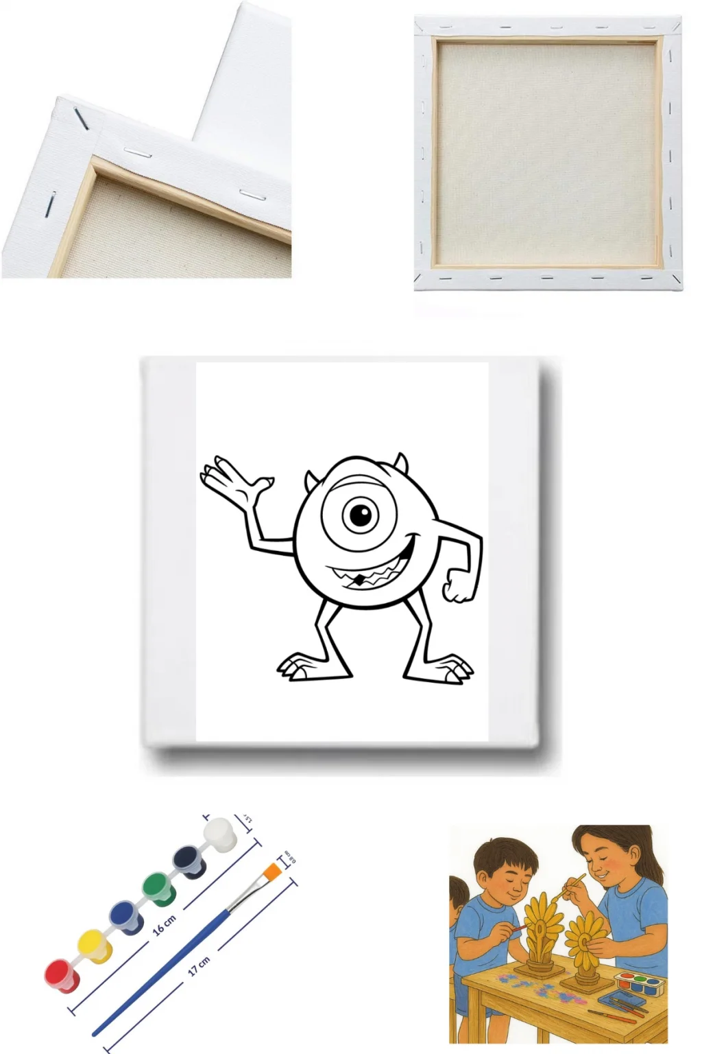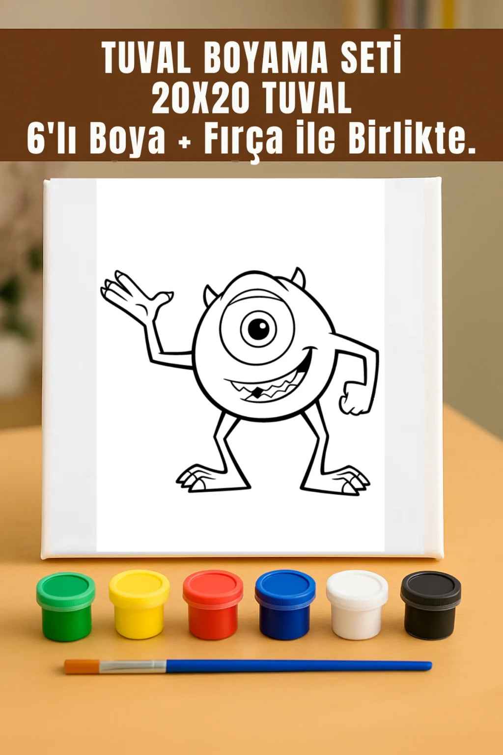 1 adet 20x20 cm tuval (Mike Wazowski temalı çizim)