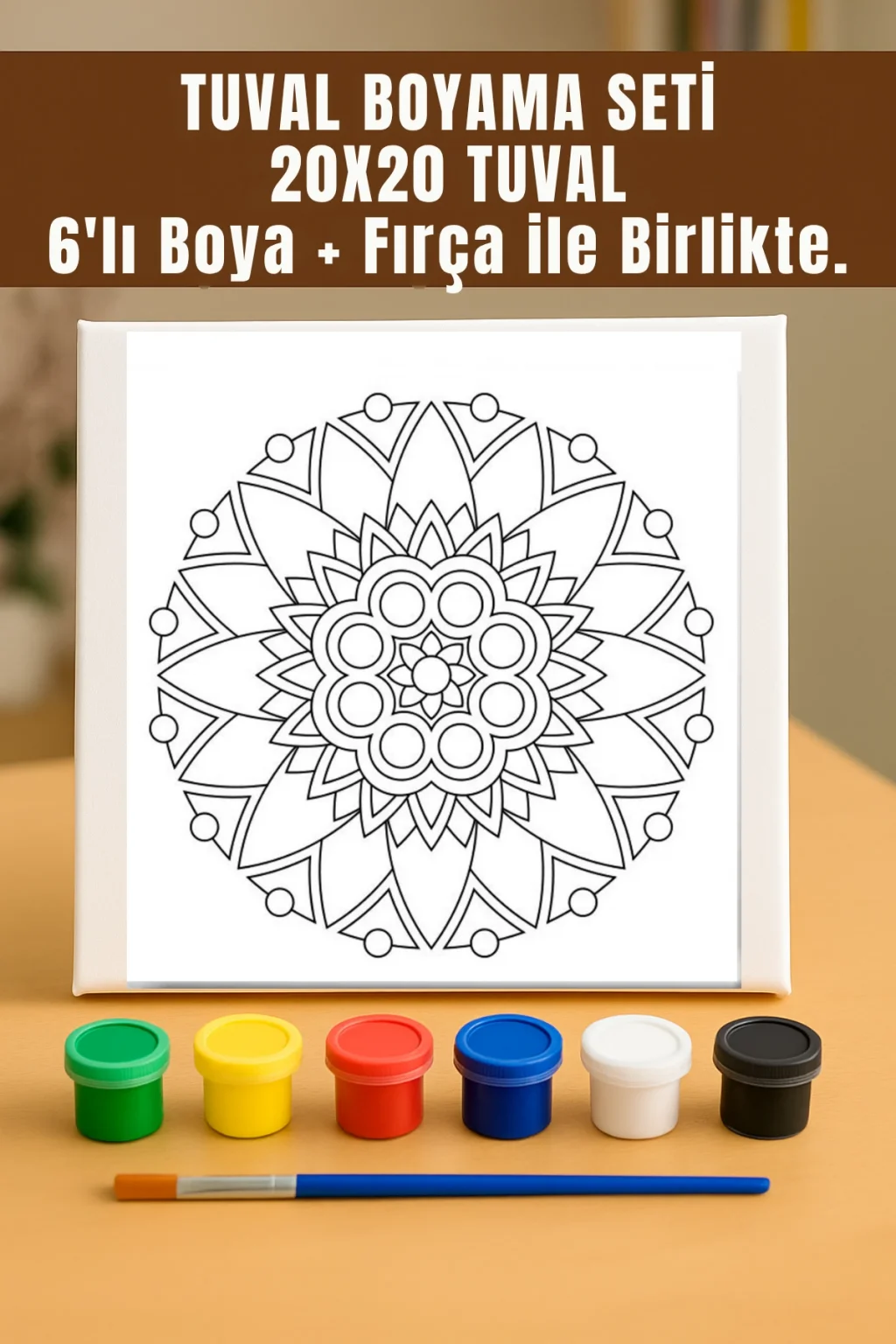 1 adet 20x20 cm tuval (Mandala temalı çizim)