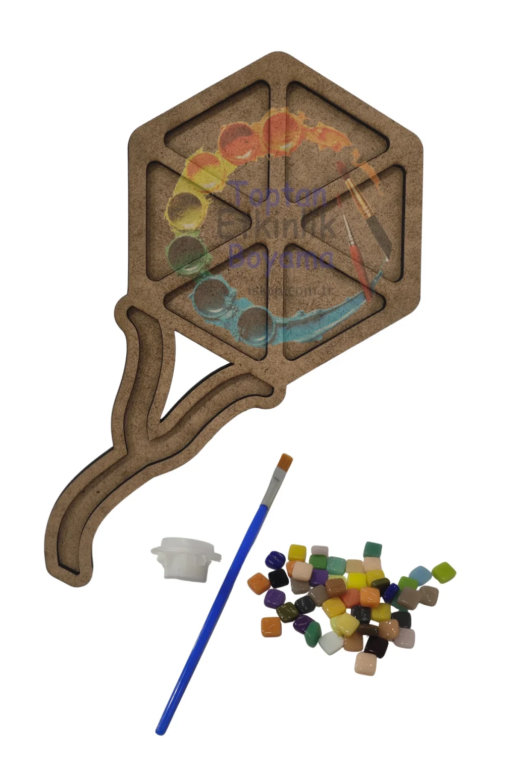 Uçurtma Mozaik Yapma Seti, renkli tasarımıyla çocuklara eğlenceli ve öğretici bir etkinlik deneyimi sunar. MDF taban üzerine yerleştirilen mozaik taşlarla uçurtma figürü tamamlanır. Çocukların dikkat gelişimini, el-göz koordinasyonunu ve hayal gücünü destekler. Okullarda, sanat atölyelerinde ve evde ailece yapılacak keyifli etkinlikler için mükemmel bir seçenektir.
