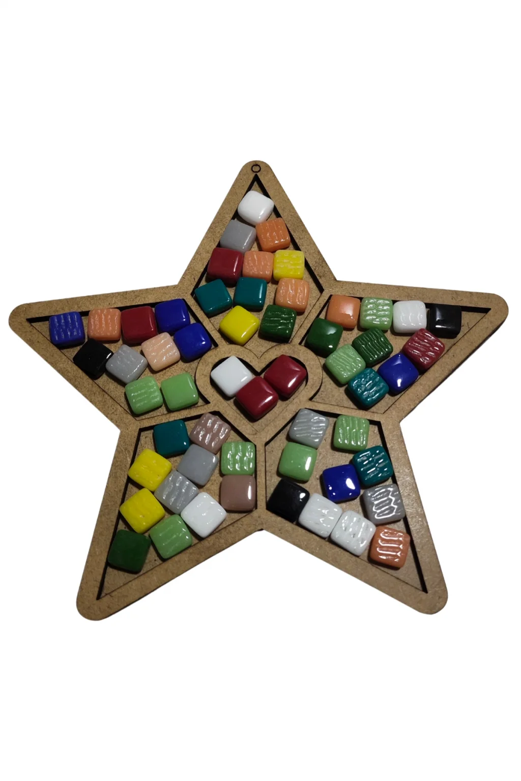 Dayanıklı MDF malzemeden üretilmiş yıldız formu, mozaik taşların kolayca yerleştirilebilmesi için özel olarak tasarlanmıştır. Çocuklar farklı renklerdeki mozaik taşları kullanarak kendi yıldız tasarımlarını oluşturabilir ve ortaya renkli, dikkat çekici bir çalışma çıkarabilirler.